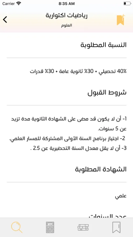 - الرجوع للتخصصات المختارة عبر خاصية المفضلة.