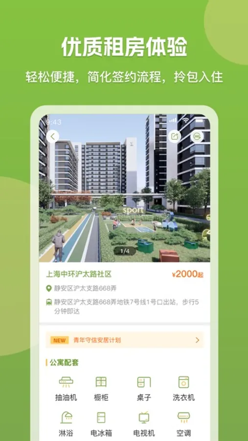 微领地青年社区,服务于最广泛的青年租房人群,助力新青年人才安居。以打造小区的概念打造生活圈,提供丰富生活配套与专业服务,包括24小时安防、专职管家、保安保洁、家电维修、代收快递、休闲健身、社区巴士等等,定期举行各类社区活动,匹配年轻人生活和社交需求。