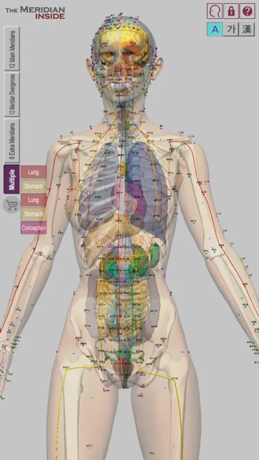 In 'The Meridian Inside of The VerdeRoot’, the skin, bones, and internal organs of the 3D human model look realistic. The 14 Main Acupuncture Point Meridian, 12 Main Meridian, 8 Extra Meridian, and 12 Meridian Divergences are distinguished by rich colors so they are very easy to see.
