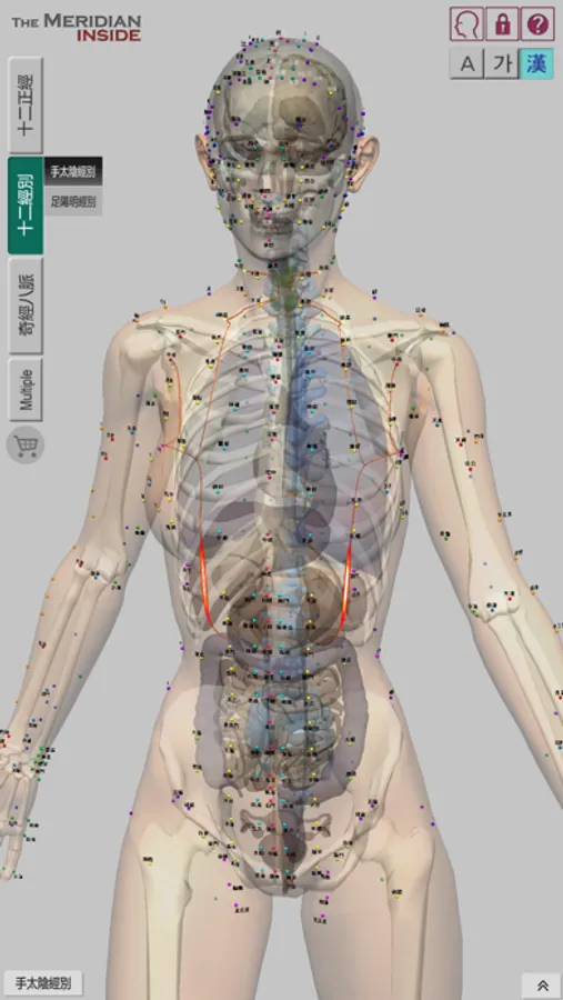 ‘The Meridian Inside of The VerdeRoot’ is easy to use because it displays 12 Main Meridian, 8 Extra Meridian and 12 Meridian Divergences on a 3D human body model. As well as 12 Main Meridian, 8 Extra Meridian, 12 Meridian Divergences and 14 Main Acupuncture Point Meridian are displayed together with accuracy, so you can easily compare between Meridians.