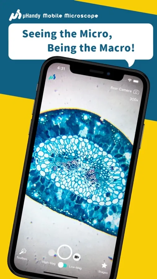 With µHandy app, you can easily observe your sample with a ruler, manual focus, and other enhanced camera feature! It even comes with a series of lessons to teach you what and how to observe. You will get amazed by this wonderful world everyday!