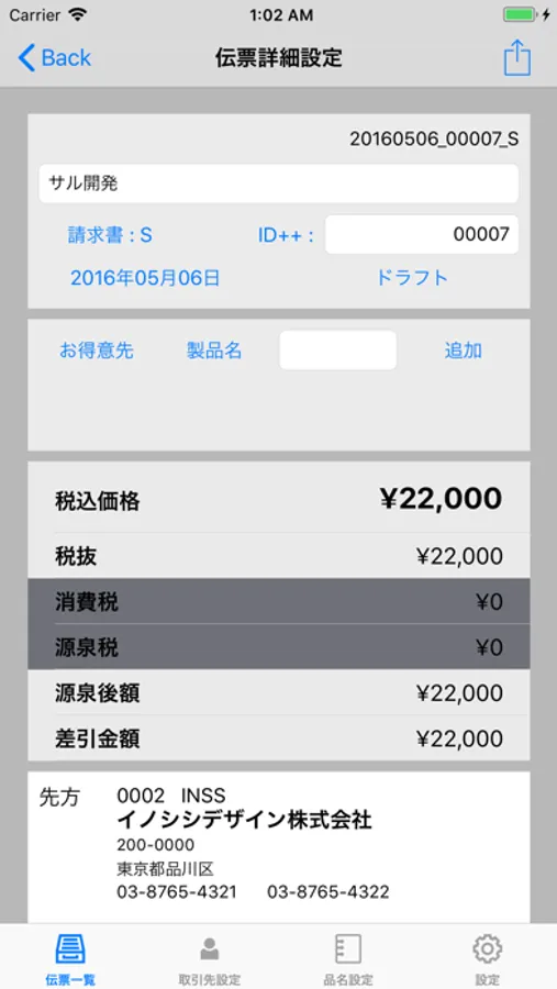 見積書や請求書、注文書といった伝票を記録し、収支を管理したり、印刷用のPDFを作成することができるユーティリティです。FacebookかTwitter、Googleでのログイン認証が必須で、アカウントを作成後、同じアカウントでログインすれば、異なるデバイス間でもリアルタイムなやりとりが可能となります。