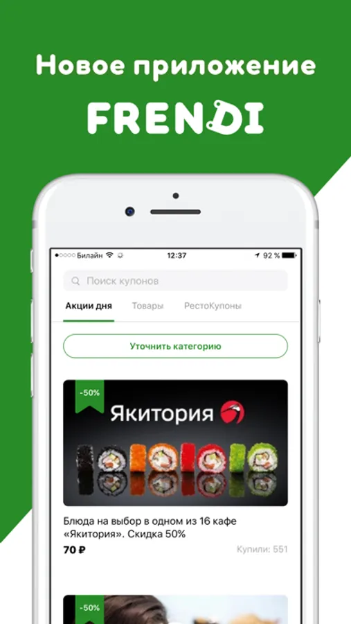 Установите наше приложение FRENDI на свой iPhone и начните экономить прямо сейчас и абсолютно везде — как у себя дома, так и отправляясь в далекое путешествие. Закупиться модными брендами, найти новый уютный ресторанчик, сорваться с нудной деловой встречи на экзотические пляжи – с нами нет ничего невозможного.