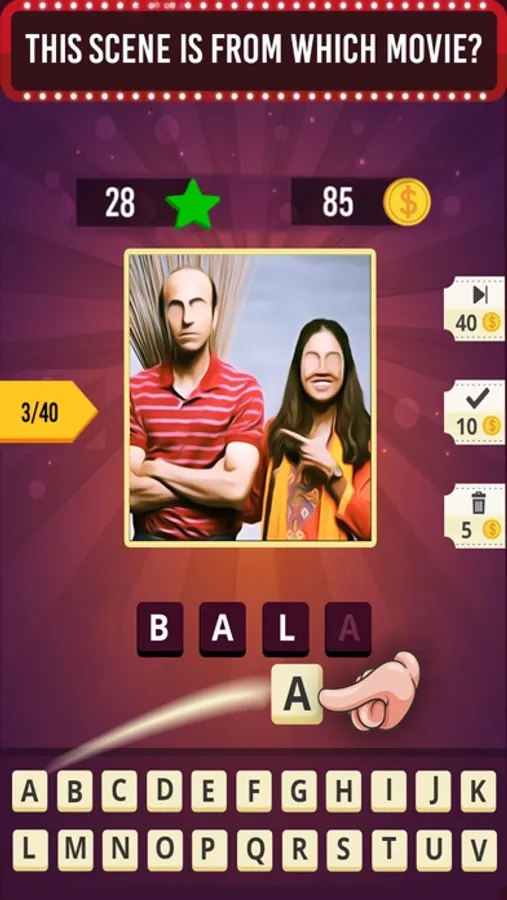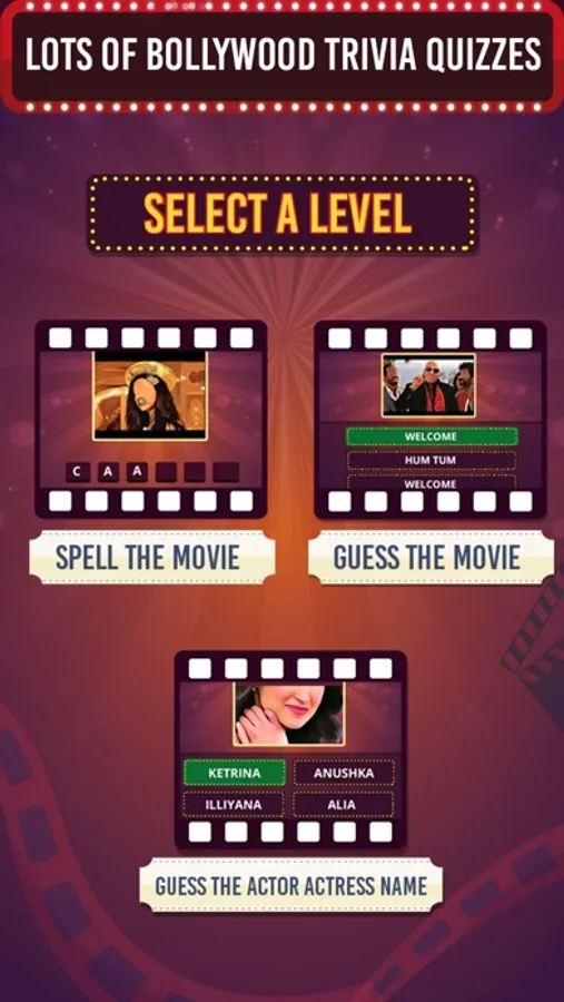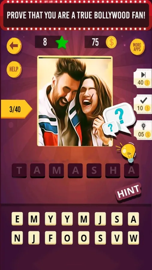 - if you cant recognize some movies, Dont worry! Bollywood Movie Quiz game has hints for you!