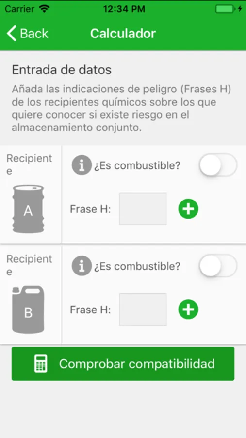Esta aplicación permite comprobar de forma genérica la compatibilidad de dos productos químicos contenidos en recipientes móviles a la hora de su almacenamiento conjunto.