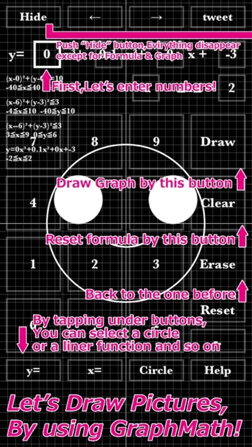 Now, you can draw linear function,quadratic function,cubic function,and circle.