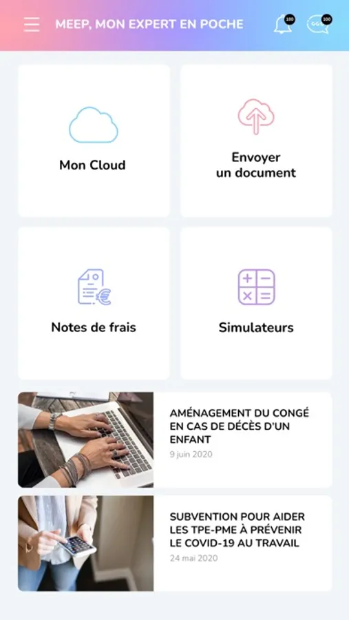 - Échange de documents : cloud, notes de frais, envoi de documents, gestion du personnel