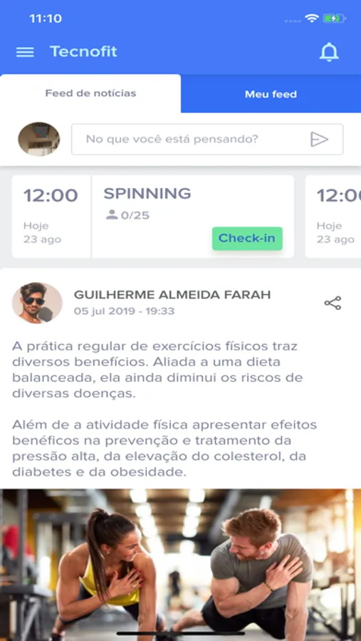 Aplicativo para uso exclusivo dos alunos de academias com o software Tecnofit.
