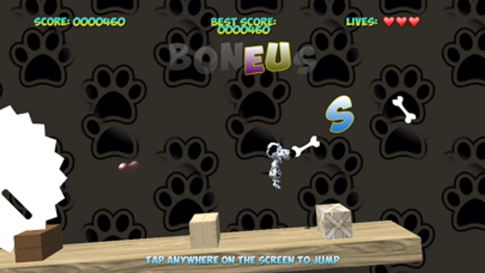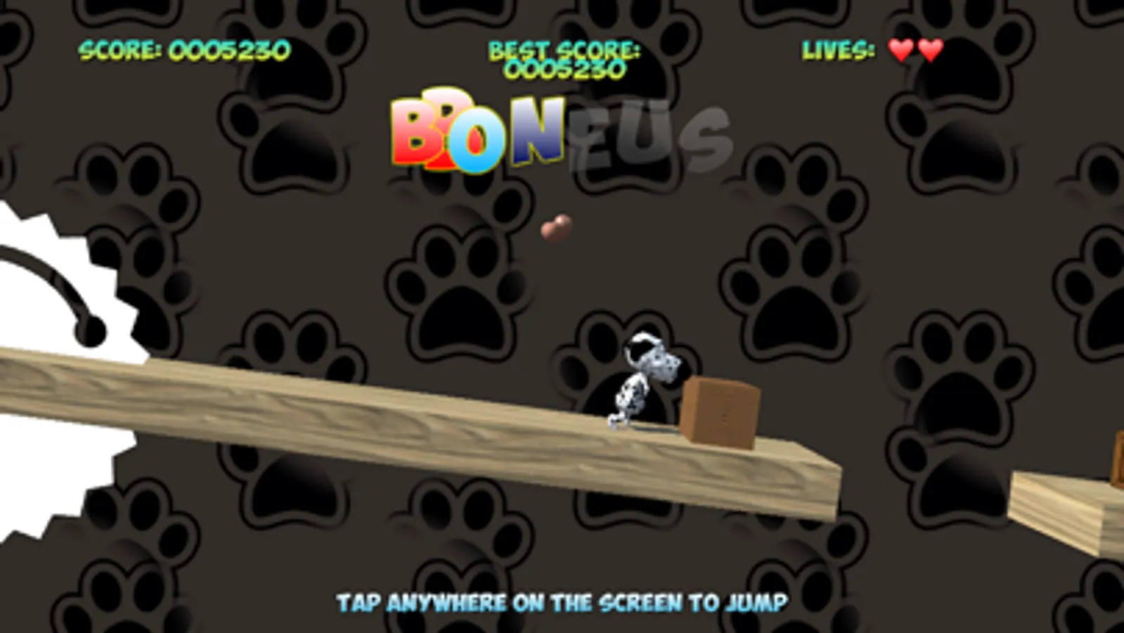 Tap the screen to make Spot jump from plank to plank, and to collect points.