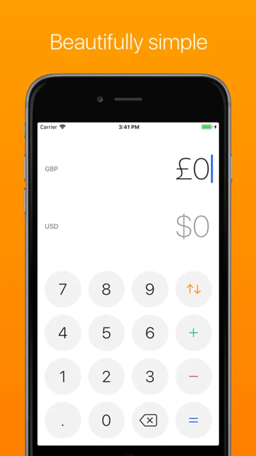 A currency converter that works out of the box without walkthroughs, settings, unnecessary options, and that looks great on any iPhone.