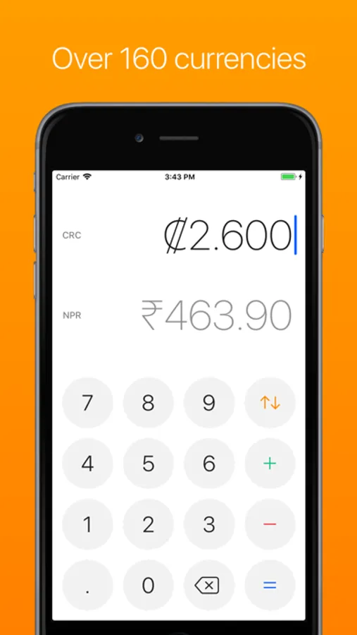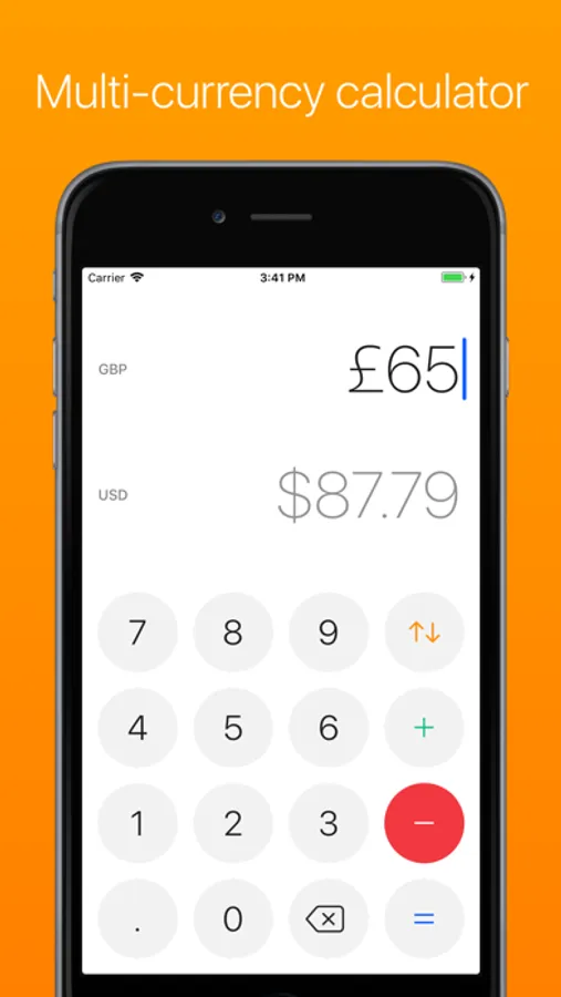 The built in multi-currency calculator allows you to add or subtract values in different currencies. This makes it easy to check how much money you have in total if you have money in different currencies with you.