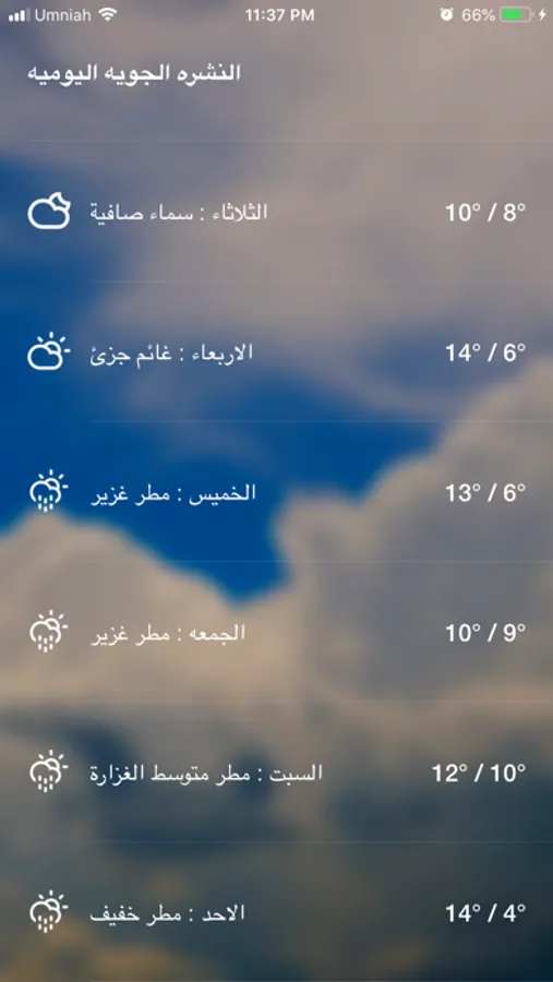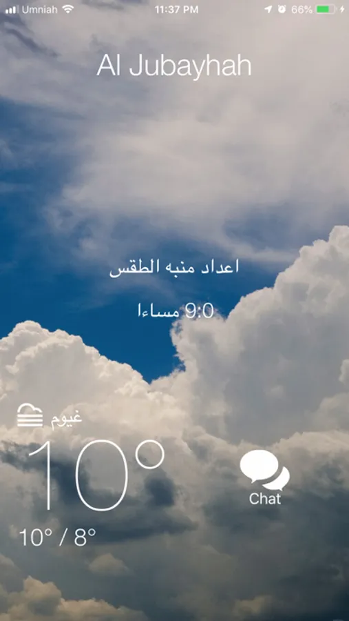 يقوم تطبيق منبه حالة الطقس مع الدردشة بتنبيهك يوميا بالحاله الجويه لليوم التالي