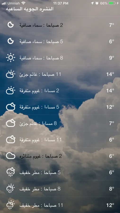 ويمكنك ايضا معرفة الاحوال الجويه للساعات والايام القادمه