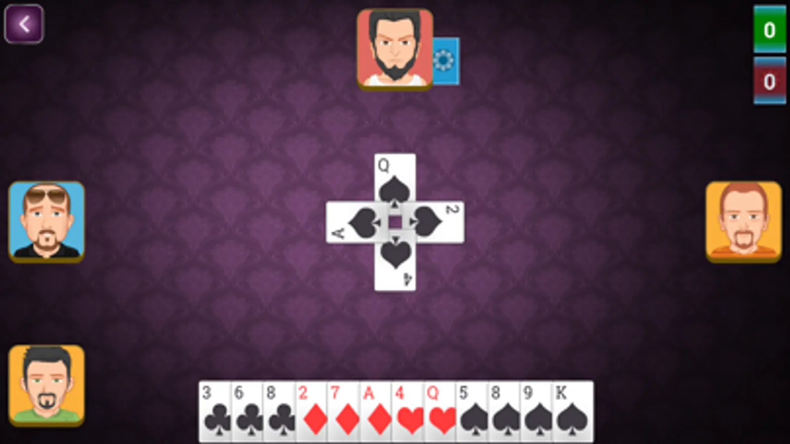 Mindi is the popular indian card game which is a team game mostly 2 teams with multiple members and main objective of this gave is to win maximum or all 10s (spades, hearts, diamonds, clubs).