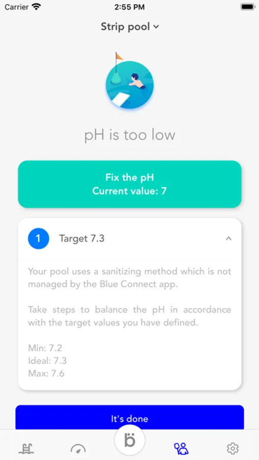 Blueriiot Pool & Spa Assistant is the free app dedicated to the treatment of water in swimming pools and spas. The app works together with Blueriiot water analyzers (Blue by Riiot, Blue Connect, Blue Connect Go, Blue Connect Plus, Smart Water Analyzer and Smart Water Analyzer Plus).