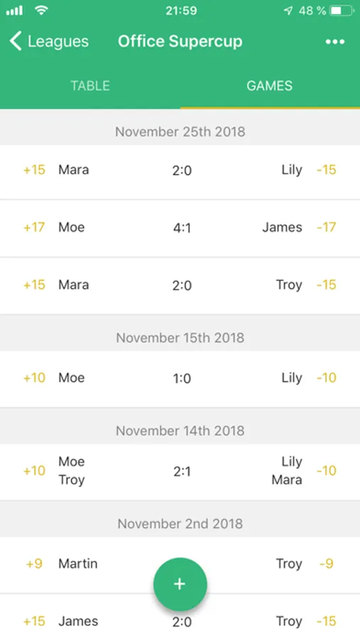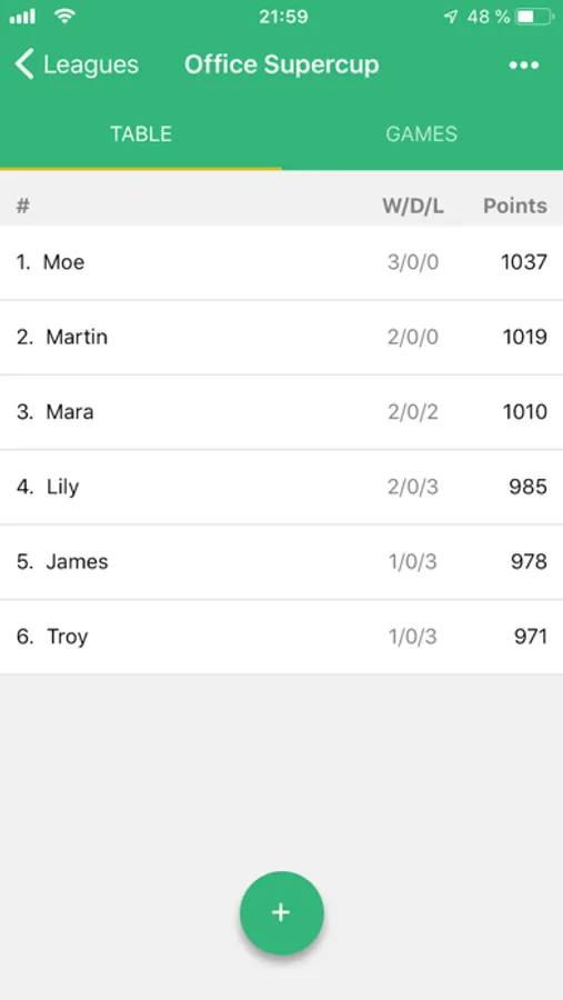 eLadder is a small app to create an online league to keep track of your games of foosball, any soccer game or similar sports. You can create a league, share your league with friends and keep track of your games. An ELO-algorithm calculates each player's points based on their games and gives you a table that never lies about who's currently the best among your league.