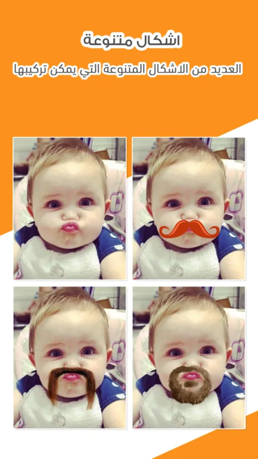 - يحتوي التطبيق على عدد كبير من اللحى والشوارب الحقيقية والمرسومة للاستخدام