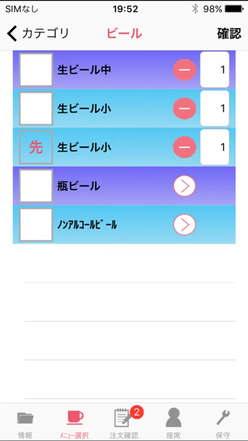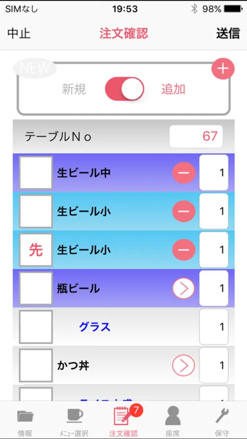 iOS端末にて使用するオーダーエントリーアプリです。 シンプルな構成および、使い慣れたスマートデバイスでのオーダーを行うことで、従業員が直感的に操作が可能です。