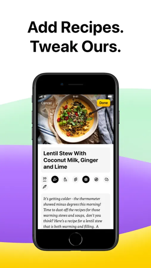 • Add Recipes. Tweak Ours. Easily add and keep your own recipes. You can even tweak any of ours with the tap of a button.