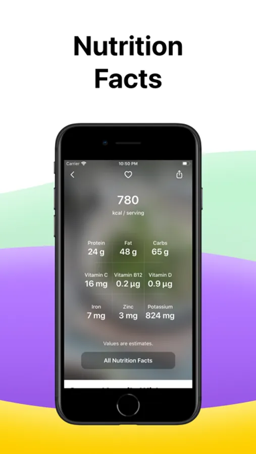 • Nutrition Facts. We provide full nutritional values for recipes. Swipe down on the recipe photo to reveal all the details.