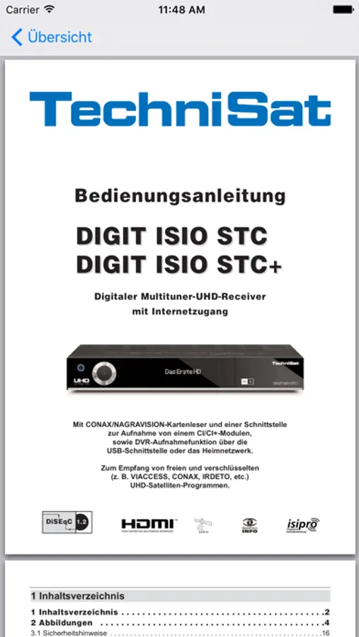Aktuelle TechniSat Kataloge, hilfreiche Bedienungsanleitungen und informative Produktvorstellungen per Video in einer App! Mit der TechniSat InfoDesk App können Sie sich informieren und inspirieren lassen. Zu jeder Zeit, an jedem Ort lassen sich verfügbare TechniSat Kataloge, Bedienungsanleitungen und Produktvorstellungen ansehen und herunterladen. So sind Sie immer bestens informiert – egal ob zu Hause oder unterwegs. Entdecken Sie in dieser kostenfreien App die TechniSat-Produktvielfalt vom hochwertigen Smart-TV und Digitalreceiver, leistungsstarken DigitalSat-Antennen bis hin zu DAB+ Radios, Mobile-Devices und vielem mehr aus allen Bereichen der Unterhaltungselektronik.