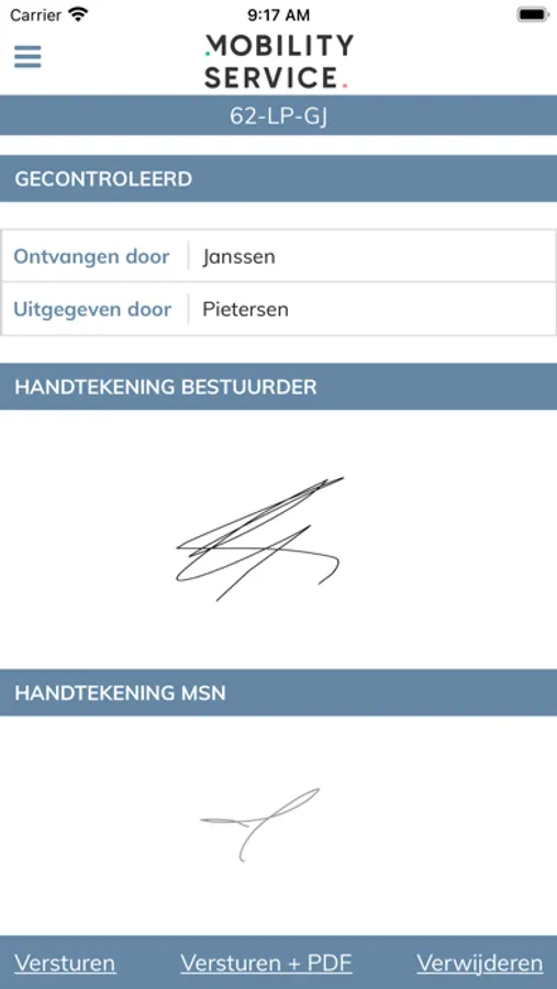Deze app van leasemaatschappij Mobility Service Nederland wordt gebruikt om de aflevering / uitgifte en de inname van auto's geheel digitaal mogelijk te maken.