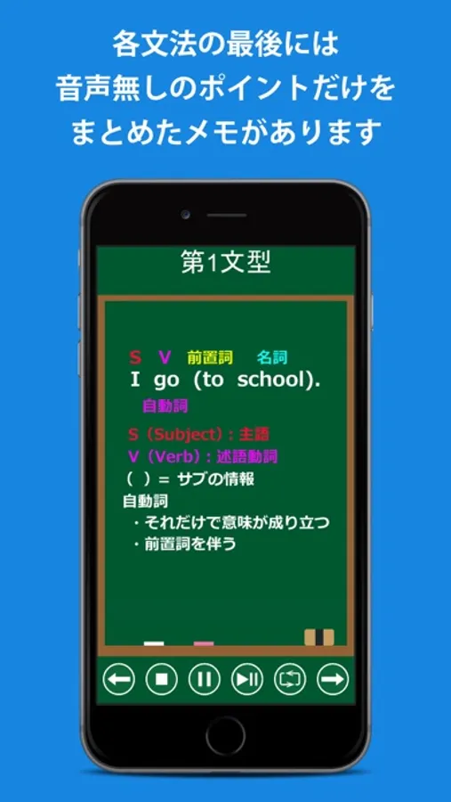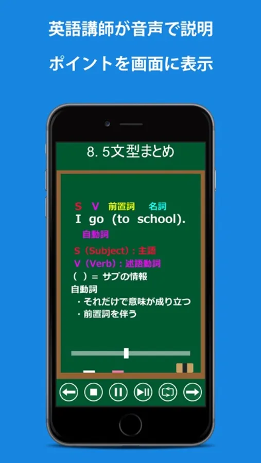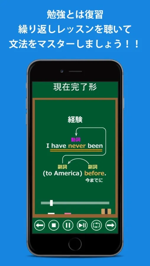 さて、学校で英文法を学んだとき、とてもたくさんあって何が何だかわからない、なんて思いませんでしたか? このアプリでは覚えてもめったに使わないことなどはやりません。必要なもの、大切なことをピックアップしています。このアプリで学ぶ文法をマスターすれば、英会話力が飛躍的に向上すること間違いなしです。そして、文法を知ることで英語を読む、書く、聞く、話すことがスムーズになるでしょう。