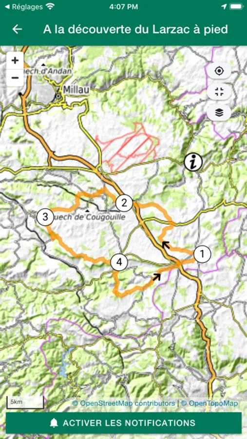 Déclinaison du portail rando.parc-grands-causses.fr pour smartphones et tablettes.
