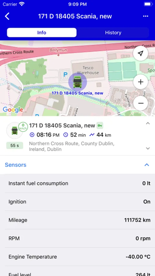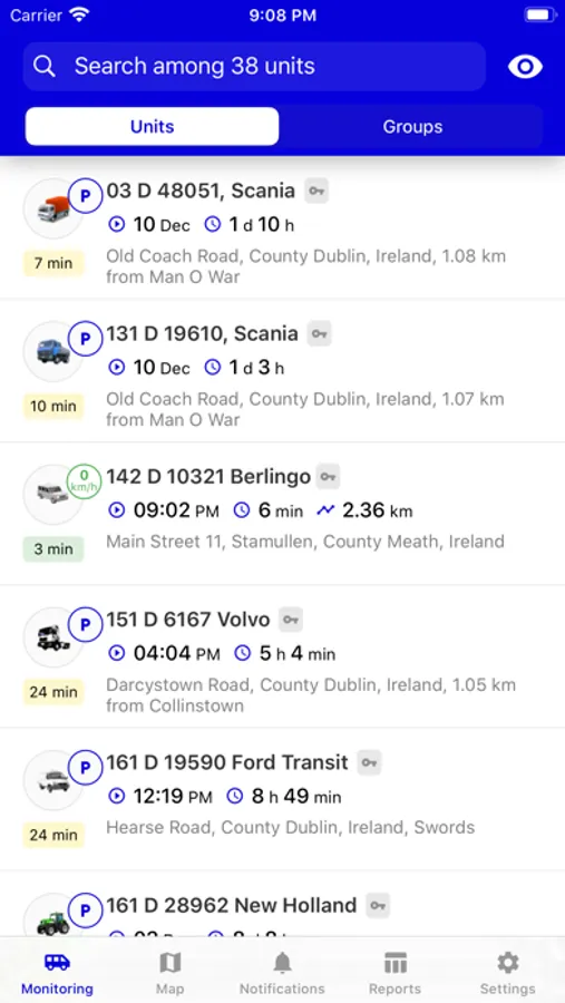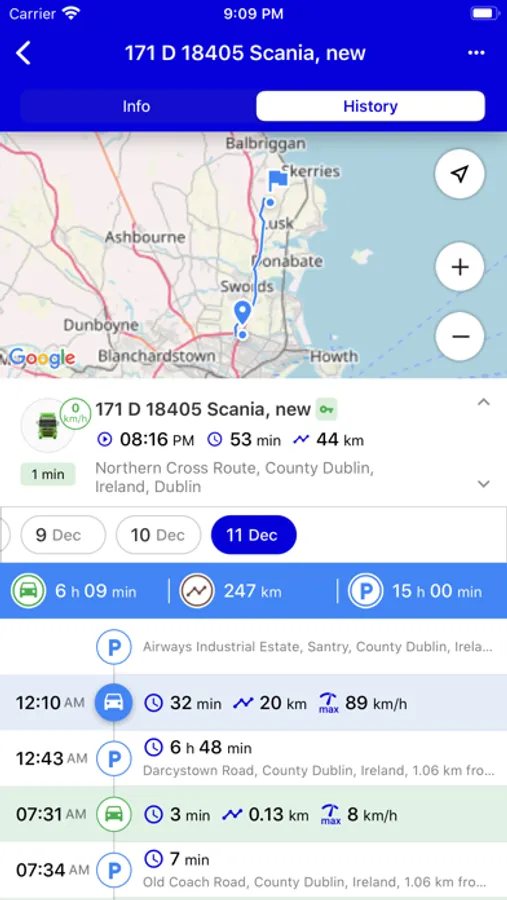 You can convenient select a vehicle based on its location on the map or from the vehicle list. The app will then give you a detailed overview of all trips and stops made right at your fingertips…