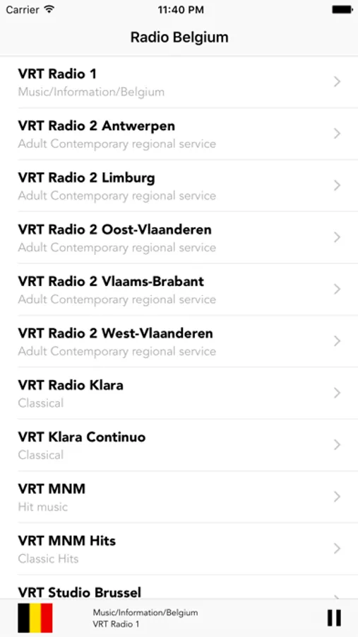 This app allows you to listen to the majority of Belgian FM-radio, AM radio and web stream radios.