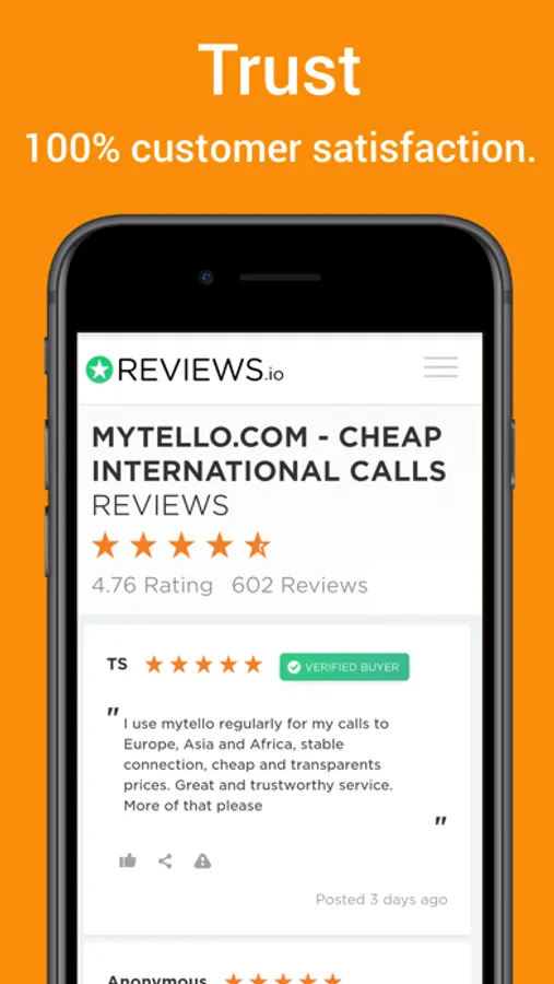 mytello connects over 150,000 people every month, cheaply. There’s no contract, just a low rate per minute to call any number in 227 countries. You don’t need an internet connection to make a call and the person your calling doesn’t need our app. Even better: your credit never expires, there’s live-chat customer support, and we guarantee great call quality or your money back.