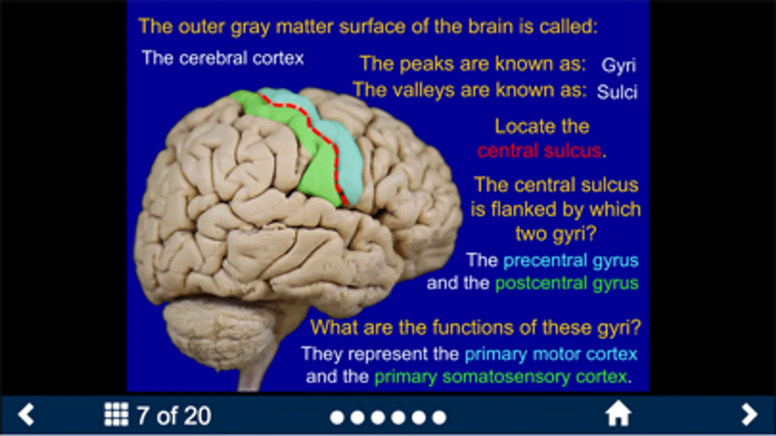 The Neuroanatomy SecondLook™ application is a study aid that provides a series of neuroanatomical images for users to self-test their level of knowledge and ability to recognize structures within the human central nervous system. This application was developed with the learner in mind, especially medical, dental, nursing, and other health sciences students, and lab professionals. The complete app has twelve slide sets, covering Gross Neuroanatomy, the Spinal Cord, Ascending and Descending Pathways, Cranial Nerves, the Diencephalon, Forebrain, Brain Stem, the Limbic System, the Auditory/Vestibular System, Visual System, and Neurohistology. It follows the award-winning concept of the other SecondLook™ mobile apps. By taking a "SecondLook" at these images, users are able to quickly self-evaluate and test their knowledge about the human central nervous system in order to identify gaps and to be better prepared for tests. This mobile application will also serve as an excellent review tool to prepare for licensing examinations.