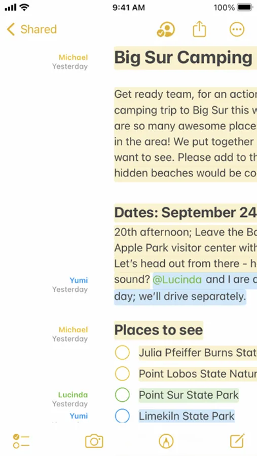• Mention friends to notify them of important updates and link them directly to a shared note.