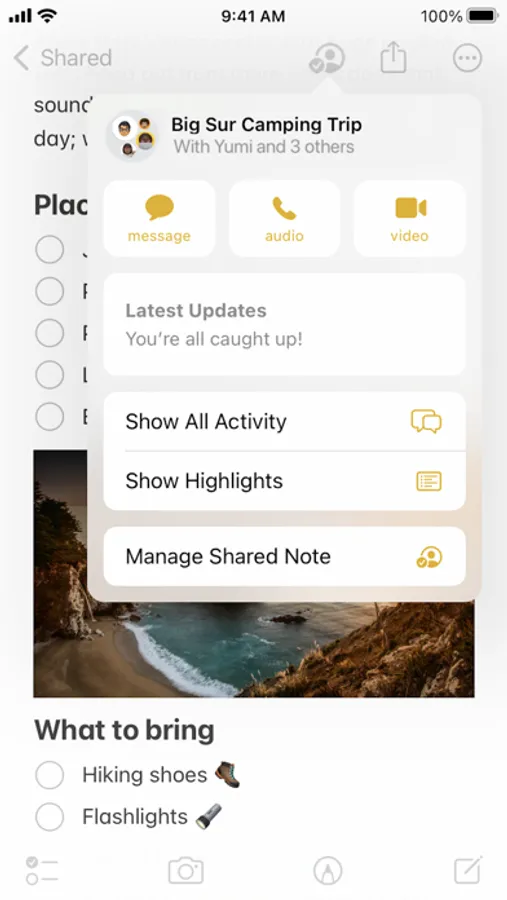 • See what others added into a shared note while you were away with Activity view, a day-to-day list summary of activity from each collaborator.