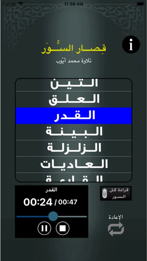 و أيضا هناك ميزة التشغيل في الخلفية لتتمكن من الاستماع للسور الكريمة و الجهاز مقفل.