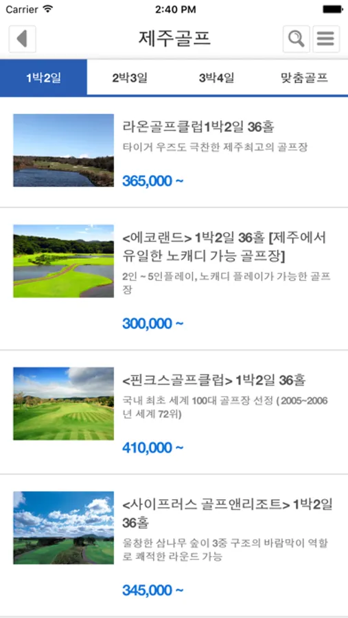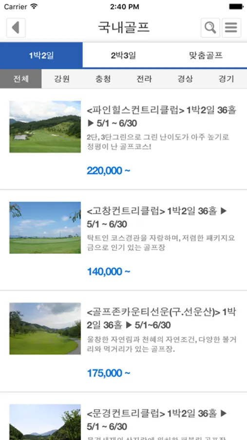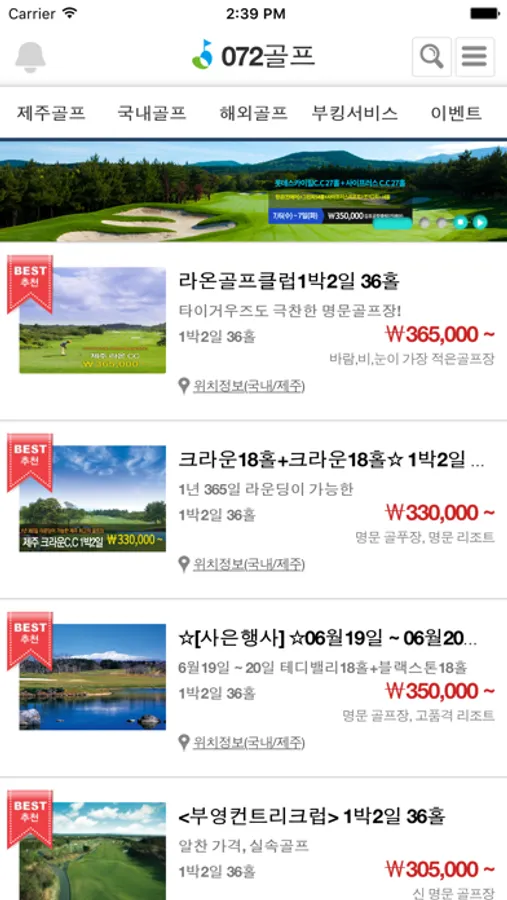 국내, 제주, 해외 골프 패키지 및 실시간 예약을