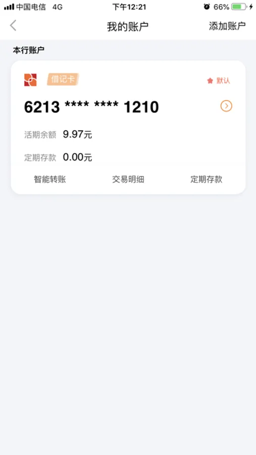 交易明细:可显示手机银行下挂账户的所有交易,包括行内转账、跨行转账及定期存款和七天通知存款的存入和支取。