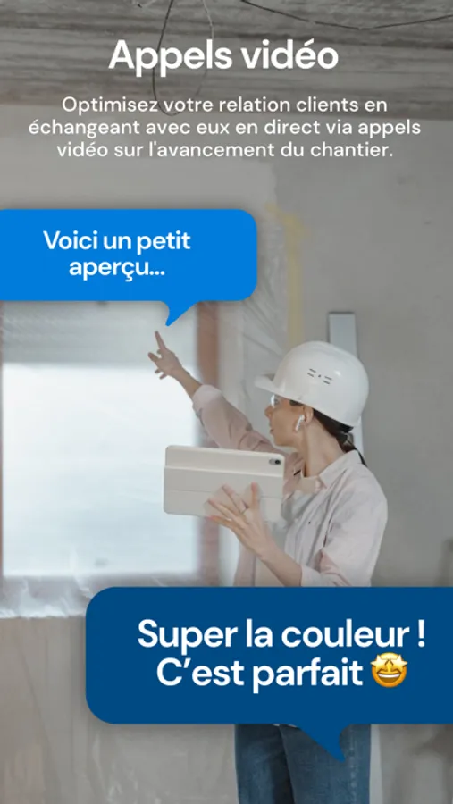 Essayez dès aujourd'hui cette offre de service innovante, 100% dédiée au suivi des chantiers des particuliers et améliorez votre communication et vos échanges avec vos clients.