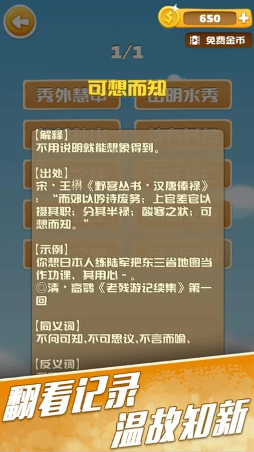 在游戏中学习2000个常用成语,寓教于乐,还等什么?!快来下载吧。