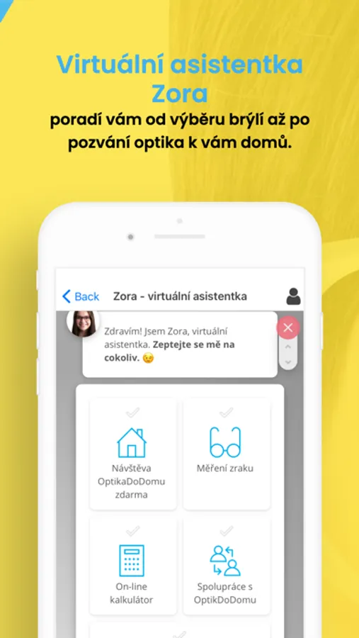 Aplikace Oční optika usnadňuje objednávku i vyřízení optika do domu. Optik do domu jednoduše přes mobilní aplikaci Oční optika. Zeptejte se přes online chat, zažádejte v online formuláři, odebírejte novinky, využijte navigaci na jednotlivé prodejny. Vaše interaktivní aplikace Oční optika.