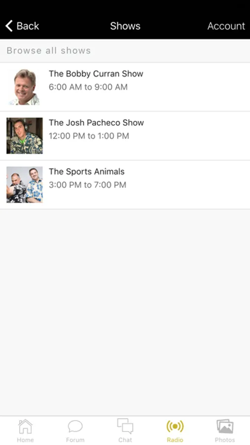 Along with providing a live feed of both ESPN 1420 and NBC Sports Radio AM 1500, the app provides on-demand segments from The Bobby Curran Show, The Sports Animals and Josh Pacheco.