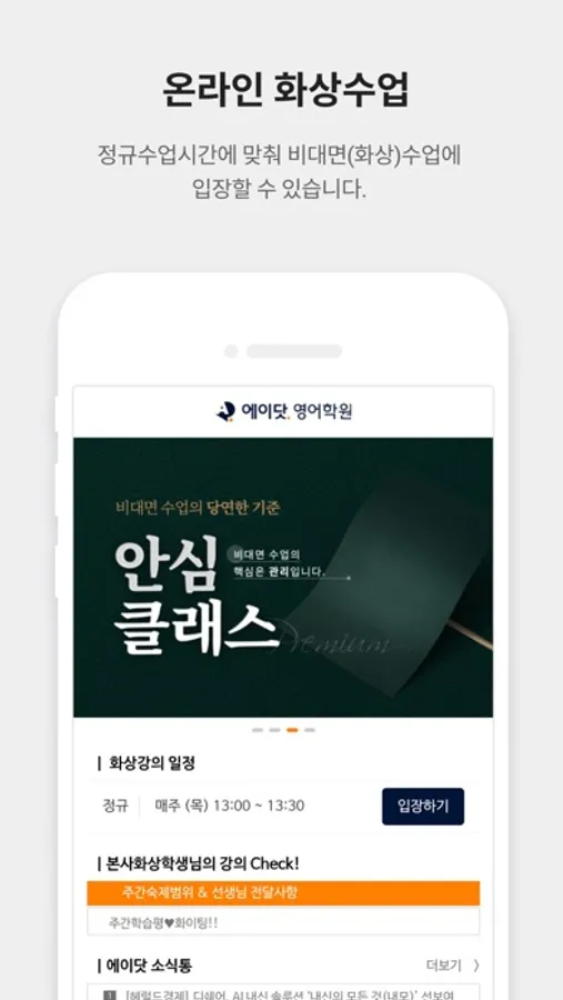 1:1 맞춤형 커리큘럼 고등영어브랜드 에이닷에서 모바일 애플리케이션 서비스를 제공합니다.