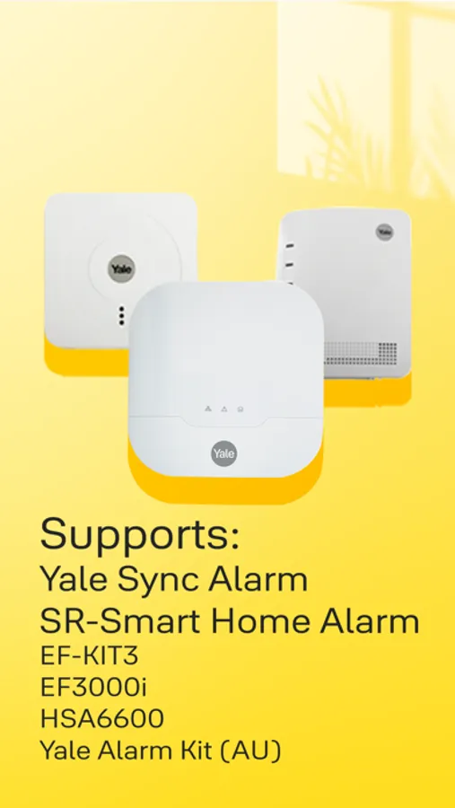 * App works with Yale Sync Alarms, Yale SR-Smart Home Alarms, EF-KIT3, EF3000i, HSA6600, & Yale Alarm Kit (AU)