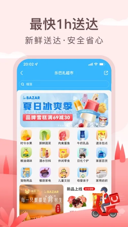 线上下单,最快1小时送货到家,购物超快捷;门店扫码购,自助购物不排队;门店自提,优惠不错过;到店享用,美食优惠早知道。多种购物及体验方式满足您多样化的生活需求。