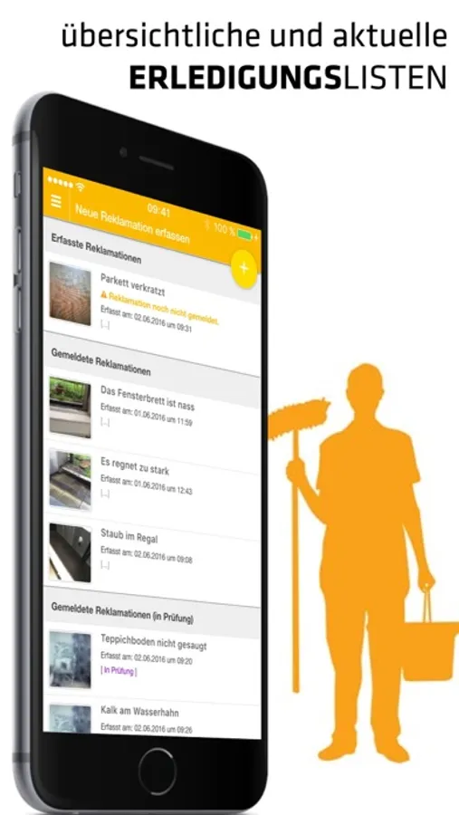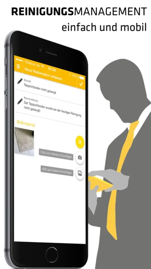 Die APP für Mangelanzeigen im Rahmen der Gebäudereinigung. Mit dieser APP können Reinigungsmängel zwischen Kunden und Gebäudereinigern kurz und mit allen notwendigen Informationen kommuniziert werden. Die APP ermöglicht es dem Kunden, Beanstandungen aufzunehmen und diese in wenigen Augenblicken dem zuständigen Objektleiter zu melden, ohne dass es der Zeit des Objektleiters bedarf, sich den Mangel vor Ort anzusehen.