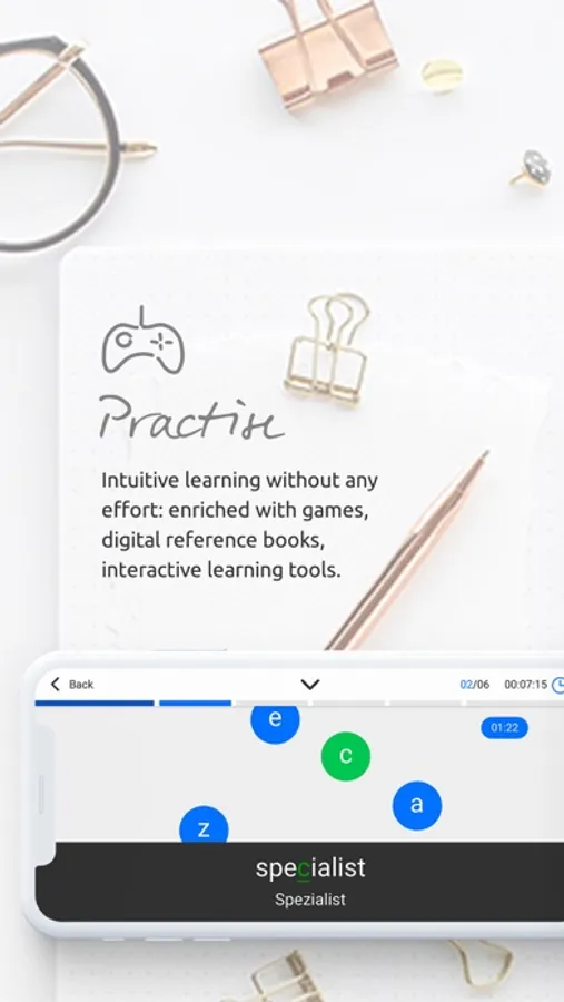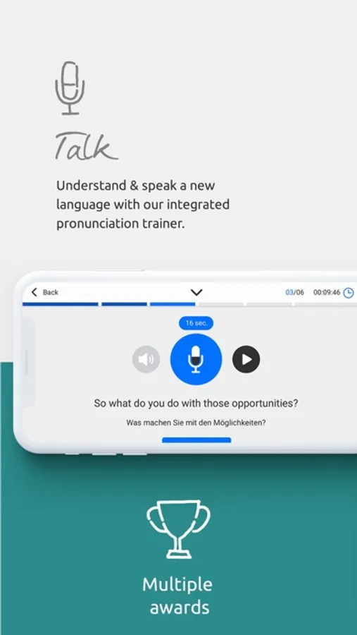 Learn languages with interactive video courses and integrated pronunciation trainer, grammar exercises, tests, and games.