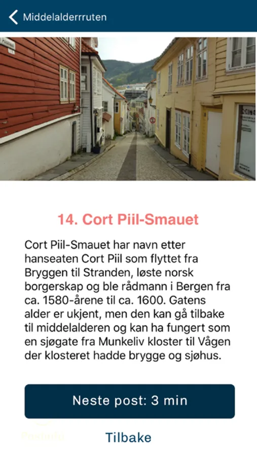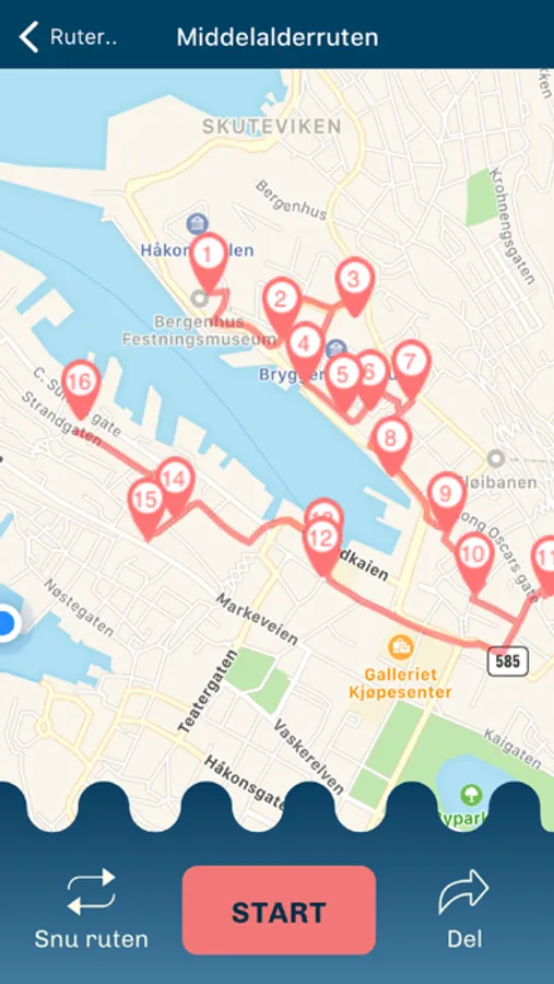 Maritim Vandring is an digital assistant allowing you to embark on historical trips with a maritime theme. The app is tailored for school trips, adults, and tourists who are interested in seafaring history. You may choose a maritime route and use GPS-positioning to guide you through all the points of interests. These points of interests entails buildings, vessels or places of historical maritime value. The app estimates the time between points of interest and will display additional information about the place when within 20 meters. Each post contains images and information supplied by Bergen Sjøfartsmuseum. A route can be reversed and shared with your friends on Facebook. The app is developed by Capgemini Norway in collaboration with Bergen Sjøfartsmuseum and Maritime Bergen.