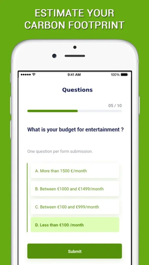 Answer a survey about your way of life to get an estimation of your carbon footprint.