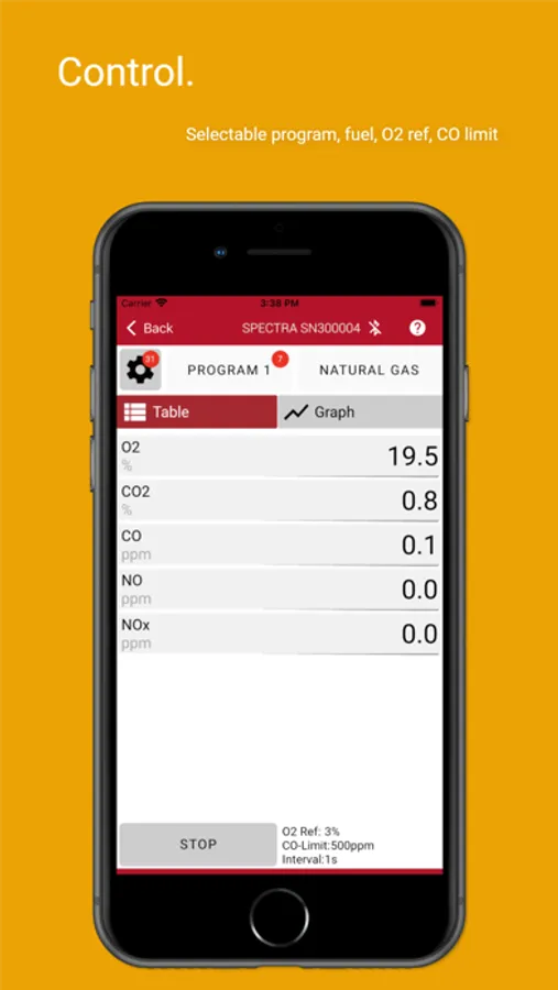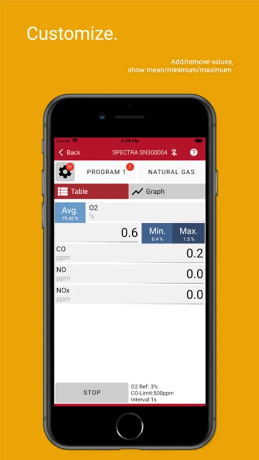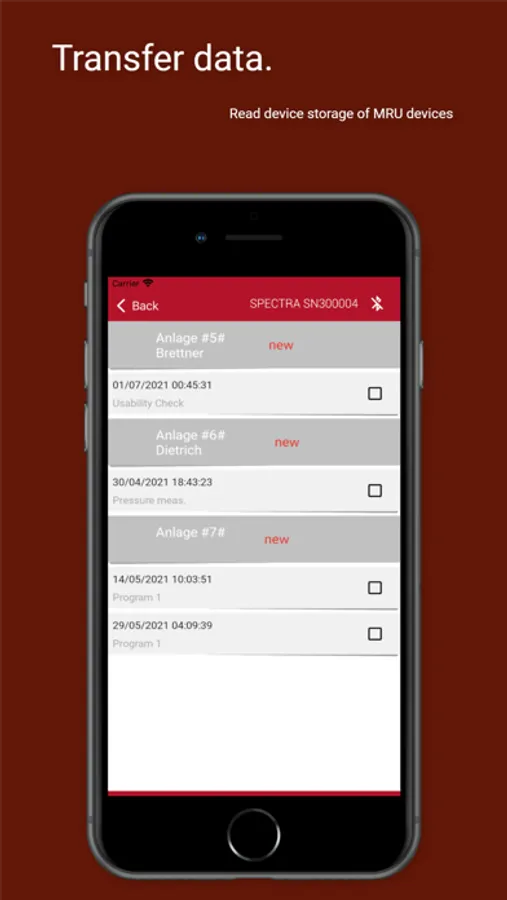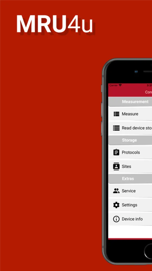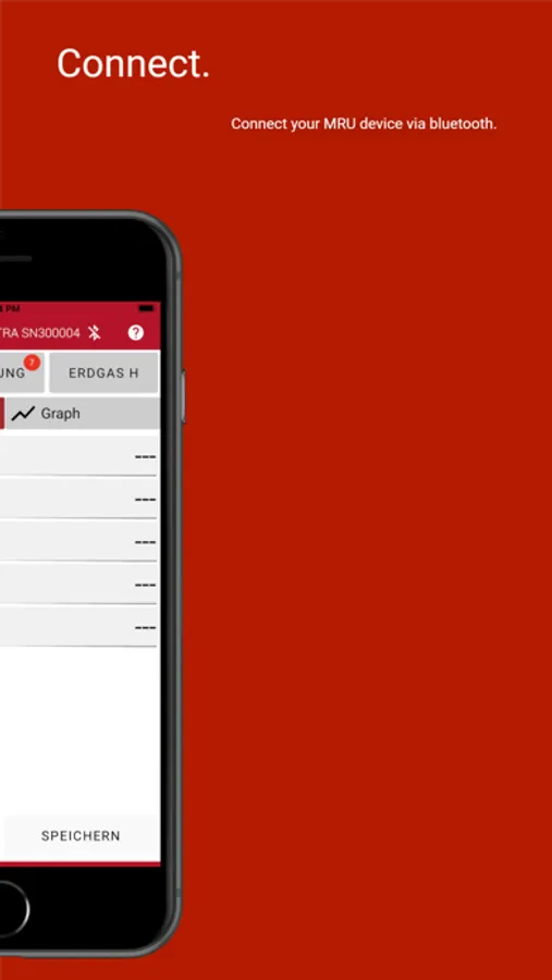 Control the most important functions of your MRU unit with your iPhone or iPad. Measured data are shown live on the screen, either as text or as curve chart. Measured values to be indicated may be individually chosen by the user. Stored measuring data always comprise all possible values of the measuring unit.