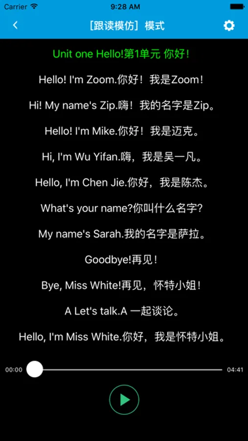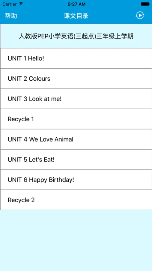 本应用对应人教版PEP小学英语3年级上学期课本,具有跟读模仿,自动听写,变速播放的复读机功能。